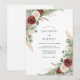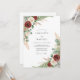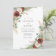 Este design elegante apresenta uma rica paleta de rosas borgonha e marfim combinadas com folhagem verdejante. Folhas de eucalipto dólar de prata e samambaias texturizadas criam um arranjo botânico exuberante. Acentos de bronze sutis complementam os tons vermelhos profundos e creme, proporcionando uma atmosfera sofisticada para um evento sazonal.