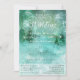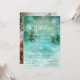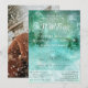 Um convite de casamento elegante de Inverno Encantado em tons encantadores e sonhadores de azul e verde com neve caindo em redemoinhos contra um cenário de pinheiros. Completo com informações de RSVP e sua foto personalizada no verso. O verso apresenta uma queda de neve transparente sobre sua foto para dar a impressão de que está nevando. Se desejar remover esta camada, pode fazê-lo escolhendo "Personalizar", rolando até o final do formulário e clicando em "Editar na ferramenta de design" para excluí-la.