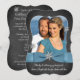 Este convite de casamento moderno e elegante em preto e branco em forma de colchetes com foto, tem uma fita impressa azul aço gelado com um laço e flocos de neve prateados brilhantes. Há também o romântico verso "Neste dia eu vou me casar com meu melhor amigo, aquele com quem eu rio, vivo, sonho, amo". Faça o upload da sua foto de noivado no espaço fornecido. Todo o texto do verso é um modelo, então você pode alterá-lo para ter sua própria redação e informações. É perfeito para um casamento casual ou informal de inverno ou Natal. O convite é mostrado aqui em papel básico, mas ficaria lindo em papel reciclado, linho, feltro ou papéis metálicos em gelo ou champanhe. Se você quiser um brilho sutil no papel, escolha os papéis metálicos. Se você quiser uma textura pesada e agradável, escolha o papel feltro. ****POR FAVOR, NOTE que tudo será impresso como aparece no seu monitor, então se você tiver problemas de digitação, alinhamento ou tamanho, por favor entre em contato comigo para obter ajuda ANTES de fazer o pedido. Não posso ajudar com nada depois que o pedido for feito na Zazzle. Se você precisar de outros itens