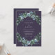 Este design apresenta um rico fundo de ameixa que cria uma atmosfera sombria e sofisticada. Flores delicadas em aquarela em tons de azul poeirento e verde salvia formam um arranjo botânico exuberante. Pequenas flores elegantes que lembram amores-perfeitos e rosas estão aninhadas entre folhas macias e afiladas. Esta paleta de tons frios é ideal para um evento noturno sazonal.