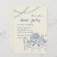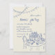 Modelo de Convite de festas de Desenho de Mão Azul, Convite de Ilustração Quirky para Partido de Janto, fonte Manuscrita Branca.