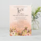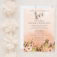 Uma celebração do amor! Um convite floral de casamento com um efeito colorido de pêssego e um lindo jardim de flores de aquarela ao longo da borda inferior.