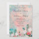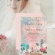Vestido de Casamento do Jardim de Flores Silvestres Cor-de-Água, Cor-de-Rosa, desenhado sobre um fundo de flores selvagens de cor pastel, em tons de rosa-pincel e verde-rosa-verde-verde-verde-claro. O texto inicial inclui: Nomes da noiva e do noivo, data de casamento, hora, local e recepção a serem seguidos. O inverso é um plano de fundo cor-de-rosa pincelado correspondente. Para personalizar, simplesmente insira seu texto em nosso modelo fácil, substituindo o exemplo. Certifique-se de ver a coleção completa de casamentos de aquarela do Jardim de Flores Selvagens.