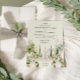 Convite de casamento com belas ilustrações de aquarela de jardins e fundações em conjunto com um roteiro elegante e fontes serif nas quais todas as suas informações personalizadas estão escritas. Você pode encontrar mais produtos correspondentes desta incrível coleção de casamento em nossa loja.