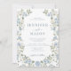 Mergulhe na sofisticação refinada com nosso elegante convite de casamento do jardim russo boêmico em tons azuis claros. Apresentando uma coroa de terra graciosa interligada com flores brancas, azuis e folhas verdes, este convite é perfeito para comemorações de primavera/verão. Inclui um monograma e um código QR para o seu website de casamento, acrescentando um toque moderno.