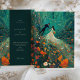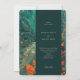 Mergulhe seus convidados na magia de seus próximos núpcias com nosso Convite Encantado de Casamento de Jardim. Este belamente feito convite apresenta uma ilustração frontal intrincada de um casal perdido em uma dança etérea em meio a uma vibrante explosão de jardim com um espectro de cores, do verde-jade ao teal, esmeraldas e matizes florestais. Acentuados com pedaços de tangerina, coral, amarelo-limão e creme, os florais exuberantes evocam um senso de romance e celebração. O verso do convite mantém uma elegante simplicidade, com ouro opulente e letras brancas contra fundo verde-marinho profundo, detalhando os detalhes do evento. Este convite é um prelúdio perfeito para um casamento mergulhado na elegância e no esplendor da natureza, referindo a arte do impressionismo através de suas pinceladas texturizadas e paleta vívida de cores.