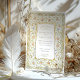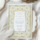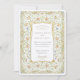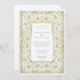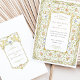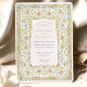 Este convite romântico de casamento captura o charme de um jardim inglês com sua fronteira floral inspirada pelo Vitoriano e detalhes elegantes desenhados à mão. O design apresenta um quadro de floração pastel macio em pincel, nádega, azul e pêssego, tudo entrelaçado com enrolação de vinhas verdes e antigos sotaques de ouro. O painel central exibe tipografia clássica que equilibra a formalidade com o calor, criando um layout de convite gracioso. O verso oferece uma delicada crista floral rodeada de flores de ouro e pergaminhos simétricos, dando um acabamento coeso e eterno à suíte. Ideal para casais planejando uma cerimônia romântica de jardim ou uma celebração com talento de safra e elegância botânica.