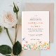 Este convite de casamento para na moda e elegantes monogramas apresenta flores silvestres de aquarela, folhas, libélulas em paleta de cor aquosa de rosa, azul amarelo e verde. Perfeito para primavera, verão ou casamentos outono, jardim ou celebração ao ar livre.