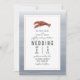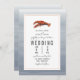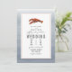 Um convite de casamento com uma design de cor de água inspirada em chambray na frente e no verso. A primeira ilustra uma lagosta. Personalize o texto da cinza.