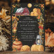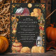Este convite de casamento rústico apresenta um fundo preto aconchegante adornado com um charmoso celeiro vermelho, fardos de feno, abóboras e lanternas vintage sob uma lua de cheio brilhante. As flores quentes do outono e os tons ricos e terríveis criam uma atmosfera convidativa perfeita para um casamento no outono. Esta design combina lindamente o charme rústico de uma fazenda com a elegância de uma noite de outono, fazer que seja a escolha ideal para casais que buscam uma celebração única e sazonal.