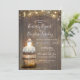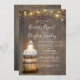 O convite de casamento para madeiras rústicas florais inclui o barril de vinho, as flores para o hálito do bebê, a corda de luzes e a lâmpada de safra - lanterna