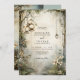 Névoa da floresta etérea e árvores com lanternas penduradas destacadas neste convite de casamento, em matizes de cinza azul profundo e névoa. Cinza azul sólida na parte de trás para pegar as cores profundas na frente do convite. Faça o pedido no impressão, como um download digital ou ambos. Crie um convite temático etéreo para o seu dia especial.