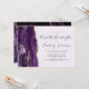 A borda esquerda deste elegante convite de casamento moderno apresenta uma cor d'água roxa, borda agitada, aparada com falso brilho dourado. O texto personalizável combina a escrita manual de cinzas de carvão, as fontes em copperplate e itálico em um fundo de lavanda. O verso apresenta um design de agate roxo e dourado correspondente.