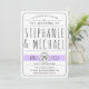 Este maravilhoso convite de casamento apresenta uma design de tipografia branca e negra, elegante e contemporânea, complementada por um toque de lavanda roxo. A estética geral exude elegância e sofisticação, com uma reviravolta vintage. O texto principal é exibido lindamente a preto em um fundo branco nítido, enquanto a data do casamento é destacada em uma charmosa faixa de lavanda. Para adicionar um toque de refinamento, uma borda negra enquadra o convite inteiro. No verso, um encantador padrão de cruzes brancas enfeita um fundo lavanda calmo. A melhor parte é que você tem a liberdade de personalizar vários aspectos do convite, incluindo texto, cor e tamanho do texto, fonte, cor do plano de fundo, assim como a cor da faixa de lavanda e o padrão no verso.