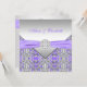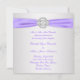 Fita roxa de lavanda elegante com centro de joia de diamante sobre um lugar prateado e convite de casamento roxo. Personalize com sua escolha de estilo de fonte e cor de fonte. Excluir texto frontal para uma aparência mais formal.