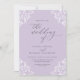Este convite para casamento de lavandas recentemente atualizado é elegante e elegante. Ele apresenta os cantos de vintage do ornamentado com a caligrafia vintage. É perfeito para um casamento elegante e clássico de lavandas.