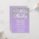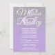 Este glamouroso, chic e elegante falso esmalte impresso cintilamente prateado no convite de casamento roxo de lavanda escura é perfeito para o evento clássico. Este design clássico e sofisticado é perfeito para o casal de competição de tendências e na moda. Personalize com sua própria mensagem na frente, assim como um monograma personalizado inicial no verso. Todas as impressão de fotos.