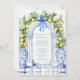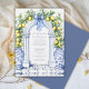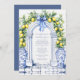 Convide seus convidados para uma celebração de amor e beleza eterno com este maravilhoso convite de casamento. Apresentando um arca de ar exuberante verde entrelaçado com limões vibrantes, esta design evoca o romance de um jardim beijado ao sol. Pilares elegantes enquadram a cena, enquanto sofisticados vasos azuis de ornamentado em cada lado acrescentam um toque de sofisticação e charme europeu. A tipografia formal melhora a estética refinada, criando um convite que expele graça e elegância. Perfeito para um casamento clássico e romântico, esta design dá o tom para um dia inesquecível cheio de amor e alegria.