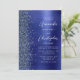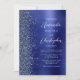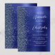 A borda esquerda deste convite de casamento moderno e elegante apresenta uma borda de brilho falso azul marinho. O texto personalizável combina escrita à mão branca e fontes sem serifa em um fundo de metal esfregado azul marinho. O lado reverso apresenta um design de brilho e metal esfregado correspondente.