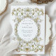 Este belo convite para o casamento mostra um sofisticado design floral com lírios brancos graciosos, meticulosamente pintados à mão em cor d'água macia. A frente do cartão apresenta um delicado quadro de lírios florescentes em tons de creme, marfim e ouro leve, simbolizando pureza e elegância. O reverso continua o tema com um arranjo simétrico de lírios, criando um equilíbrio harmonioso da beleza. As sutis tons de verde macio e bege quente complementam as flores brancas eternos, fazer este convite perfeito para casais que buscam um anúncio elegante e clássico de casamento. Ideal para casamentos de jardim, tradicionais ou formais, este convite adiciona um toque de luxo e encanto artístico a qualquer celebração.