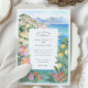 Capturar o charme da brisa do sul da Itália com este convite de casamento da Costa Amalfi. Pintos à mão em tons suaves litorâneos, a design apresenta colores vilas de encosta, mares turquesas e icônicos citrinos, evocando o espírito romântico da Riviera italiana. Enquadrada por flores silvestres e ramos de limão, a trabalho de arte oferece uma combinação perfeita de elegância e talento de destino. Ideal para casamentos em Positano, Ravello, ou em qualquer lugar inspirado pela beleza da costa mediterrânica. Facilmente personalizável para ajustado de sua celebração única.