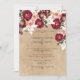 Adorável convite de casamento botânico com cor d'água rosa e rosas vermelhas e lírios brancos. A história do papel de Grunge adiciona o tema do casamento do jardim do seu país.
