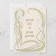 Um convite para o casamento com um nouveau de arte inspirou design, apresentando lírios brancos com folhas verdes, formando uma estrutura orgânica fluindo em um fundo bege. O texto de ambos os lados pode ser personalizado.