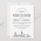 Imaginem e entusiasmem seus futuros convidados de casamento que vão viagem de longe para sua cerimônia de casamento! Este convite divertido e formal coloca um destaque na maravilhosa cidade de destino de Londres. Ele apresenta uma ilustração moderna, ao estilo deco, do horizonte da cidade descendo em direção ao fundo. Centrado acima, estão os nomes do casal de casamento e as informações do dia de casamento em texto de estilo aberto. Os elementos de texto são moldados por uma borda de linha quadrada que a envolve. Tudo isso é apresentado em um tema negro e branco neutro, clássico de cor. No verso do convite está uma opção para uma foto do casal, ou uma foto da cidade anfitriã. A imagem também pode ser removida para exibir um fundo profundo de cinzas de carvão, em vez disso, para complementar a aparência e a sensação da frente. Este convite é uma forma moderada e elegante de apresentar seu evento de casamento aos seus futuros convidados.