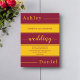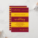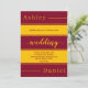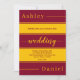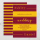 Este elegante convite para o casamento de burgundy e ouro é perfeito para um casamento moderno. o design de luxo apresenta uma hambúrdia elegante e uma caligrafia dourada num fundo de burgundy e listrado de ouro.