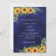 Anuncie a sua alegria com os nossos agradáveis convites para recepções de casamento! Apresentando um fundo azul marinho profundo adornado com girassóis vibrantes e elegantes eucaliptos verde, esses convites exudem charme de eterno e beleza natural. A cor azul é irregular. Personalize com seus nomes e detalhes de eventos para um toque de individualidade. Defina o tom para sua celebração com nossos incríveis convites.