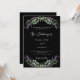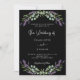 Um fundo preto decorado com flores lavandas e verde de eucalipto. Personalize e seus nomes e detalhes.