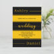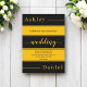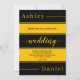 Este elegante convite de casamento preto e dourado é perfeito para um casamento moderno. o design de luxo apresenta uma elegante caligrafia em preto e dourado sobre fundo listrado em preto e dourado.