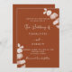 Fundo laranja escuro queimado, decorado com caules de eucalipto, galhos. Personalize e adicione seus nomes e detalhes. Fundo: fundo laranja escuro queimado.