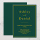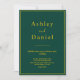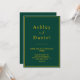 Este elegante convite de casamento verde e dourado é perfeito para um casamento moderno. o simples design apresenta uma elegante caligrafia de ouro num fundo verde.