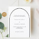 Um convite de casamento elegante. Um fundo branco com um arco preto na frente.