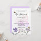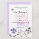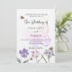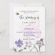 Um fundo branco. Decorado com abelhas, pintado flores silvestres em violeta, rosa e uma borboleta grande. Personalize e adicione seus nomes e detalhes.