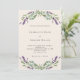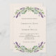 Um fundo de cor bege decorado com flores de lavanda roxa e verde de eucalipto. Personalize e seus nomes e detalhes.