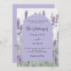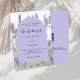 Frente: flores de lavanda como fundo e uma armação de arco. Personalize e seus nomes e detalhes. Voltar: adicione o URL do site de casamento ao código QR para obter detalhes e/ou RSVP.