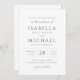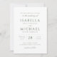 O convite clássico de casamento moderno apresenta um roteiro de na moda e tipografia com os detalhes da sua festa em verde e branco, simples e elegante, excelente para o casamento formal minimalista, casamento clássico tradicional, casamento de luxo moderno. Veja todas as peças correspondentes na coleção abaixo.