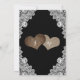 Convite de casamento de raça rústica negra com dois corações de burlap, luzes de cordas e renda floral branca. Design perfeito para a sua festa de casamento rústica preta.