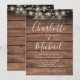 Um convite de casamento na moda rústico com luzes bonito de cordas, nomes de estilo de assinatura e tipografia quic num fundo de madeira rústica. Projetado por Thisnotme©