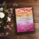 Convite de casamento lésbico colorido que apresenta luzes brilhantes de cordas contra uma lua de laranja, branco e rosa nas cores da bandeira lésbica.