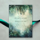 Uma ilustração com uma aquarela esbranquiçada da folhagem esmagadora em verde esmeralda, cintilante com luzes de fadas e poeira mágica, decora este convite de casamento outono de verão com um tema de floresta encantado. Um convite elegante e moderno para um casamento de conto de fadas. Perfeito para noivas que amam o cenário florestal de conto de fadas, o tema floresta de fadas ou jardim de fadas e o verde esmeralda, o ouro e as luzes de fadas.