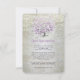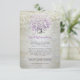 Luzes e estrelas Lavanda Cartazes com Cartão de Casamento de Árvore de Folha de Coração. Mason Jars, Stars, Ivory Damask, Strands of Garland emparelhados com uma Lavanda lilás de folha do coração, define a atmosfera para um casamento de fadas da floresta.