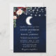Convite Celestial de Casamento. Céu azul de aquarela com luzes de cordas e a lua. Borgonha azul rosa azul brilhante. Greenery Eucalyptus Sai.