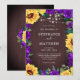 Estes convites para o casamento apresentam uma borda floral de aquarelas, rosas roxos e folhagem em um fundo de madeira com luzes brilhantes de cordas. Personalize-os com o seu próprio texto. Visite nossa loja para ver o cheio de itens que você pode personalizar para o seu casamento.