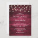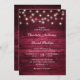 Convites de casamento russos, cheios de feridas, com luzes de cordas em um fundo de madeira de celeiro são perfeitos para convidar seus hóspedes para o seu país rústico, quintal ou festa de casamento de celeiro.