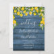 Apresentando limões, flores e verde em um fundo azul de madeira rústica, este elegante convite para casamento pode ser personalizado com suas informações especiais sobre eventos. Projetado por Thisnotme©