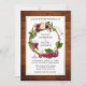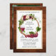 O Convite para Casamento de Uvas e Vinhas da Madeira da Elegante moderna inclui rosas de madeira, rosas cor-de-rosa, rosas vermelhas e verde botânico. Fundo Russo da Madeira do País e Quadro Dourado. Foto de volta