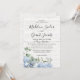 Linda hidrania azul e verde sobre design de madeira lavada branca, convite de casamento botânico. Azul empoeirado romântico e tons verdes sábios.